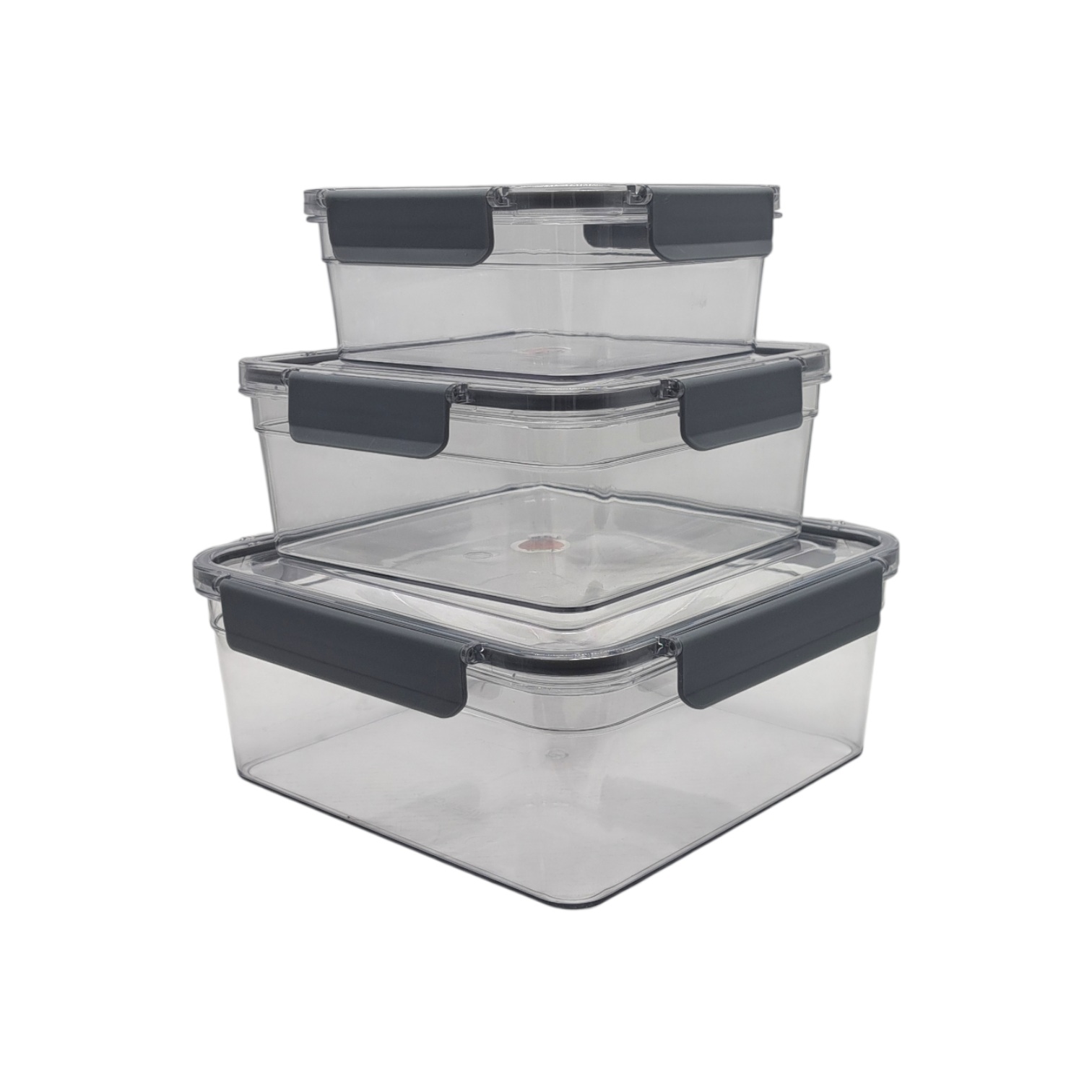 Set of 3 pieces Material: PlasticDimensions of small: 16.5 x 7 x 16.5 cmDimensions of medium: 20.5 x 8.3 x 20.5 cm Dimensions of large: 24 x 10 x 24 cm Capacity: 1000 ml+ 2000 ml + 3000 m