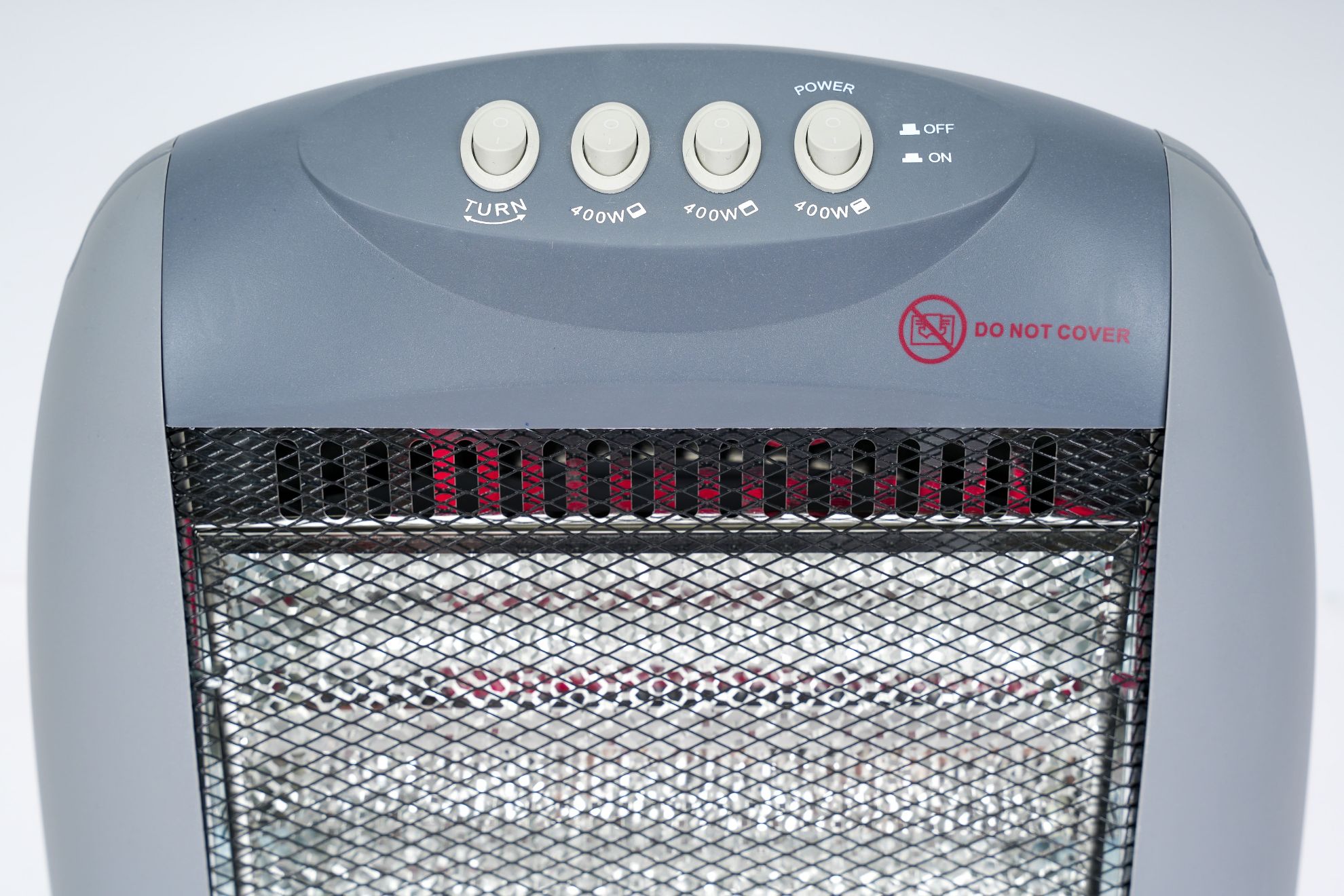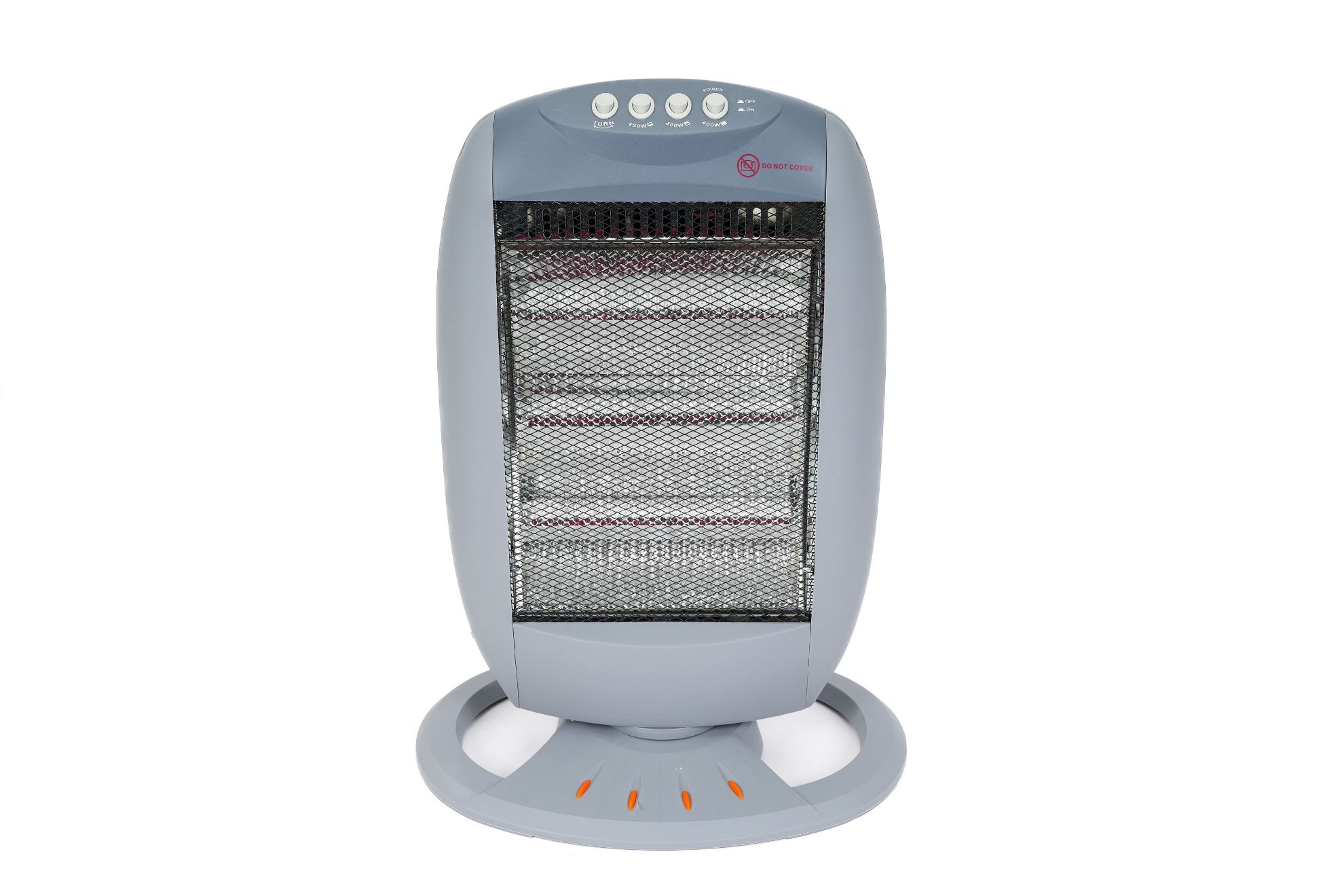 Halogen heating element, safety tip-over switch cable length.